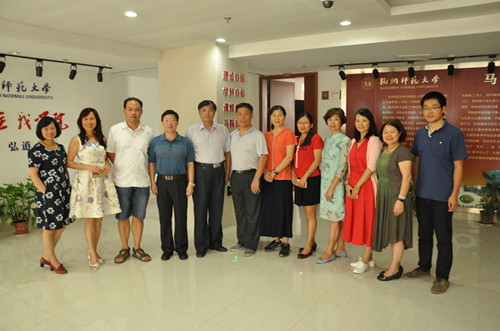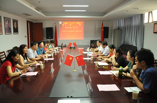 9月13日上午,广州大学成人电影 纲要教研部主任吴占九教授、纲要教研部副主任张雪娇教授、原成人电影 院长董世明教授携纲要教研部教师一行7人来成人电影 交流考察。成人电影 院长兼书记余龙进教授、副院长何丽君副教授、纲要教研室主任张坤博士及全体纲要教研室教师出席交流座谈会。