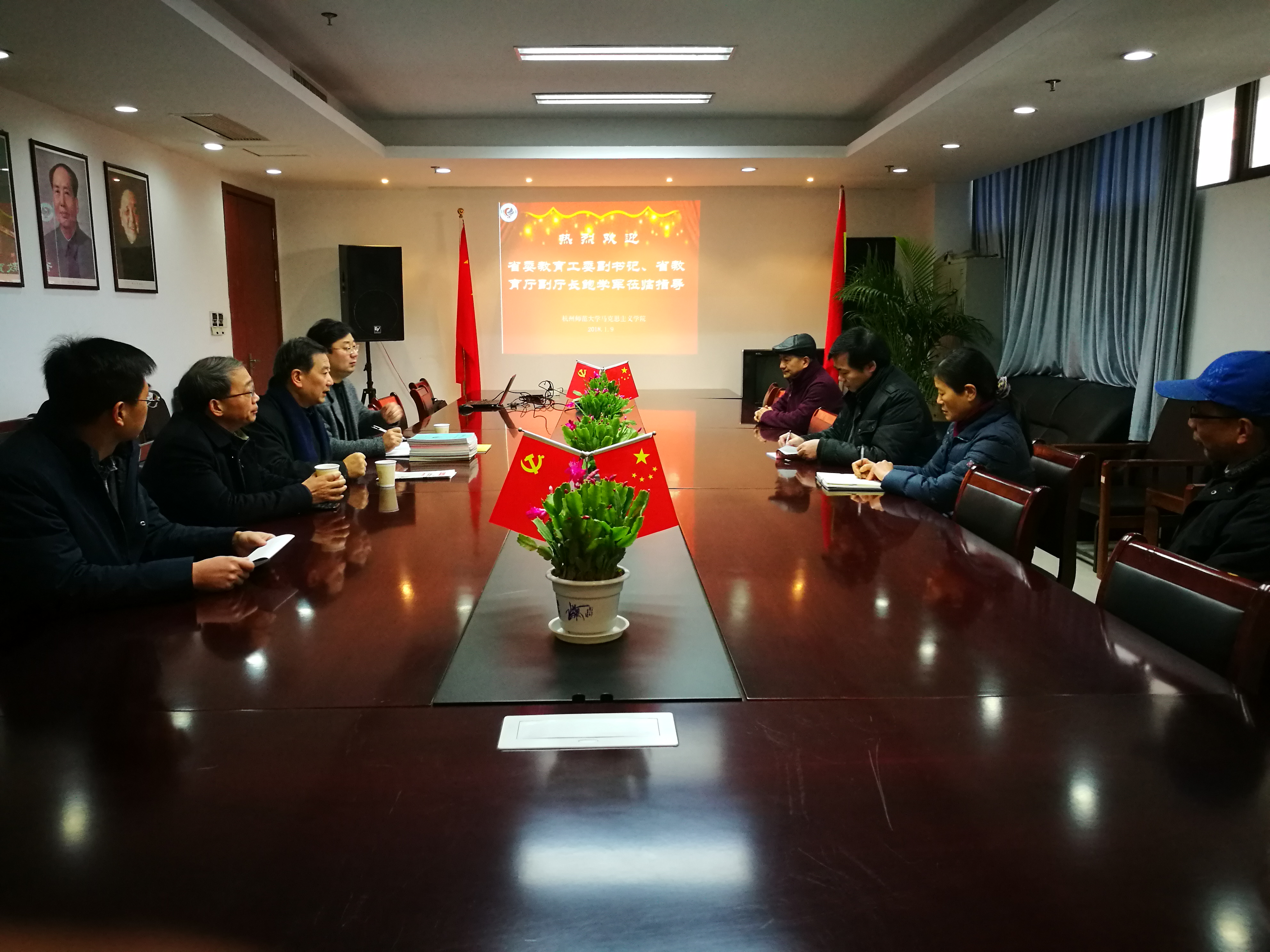 1月9日上午,浙江省委教育工委副书记、省教育厅副厅长鲍学军来我校参加2017年度大学生思政教育创新创优项目评选活动。活动前,鲍学军视察了我校成人电影 。成人电影 党委副书记王利琳、杭州市教育局高师处处长孙青峰、学生工作部部长何军、学院副院长何丽君等陪同参观。