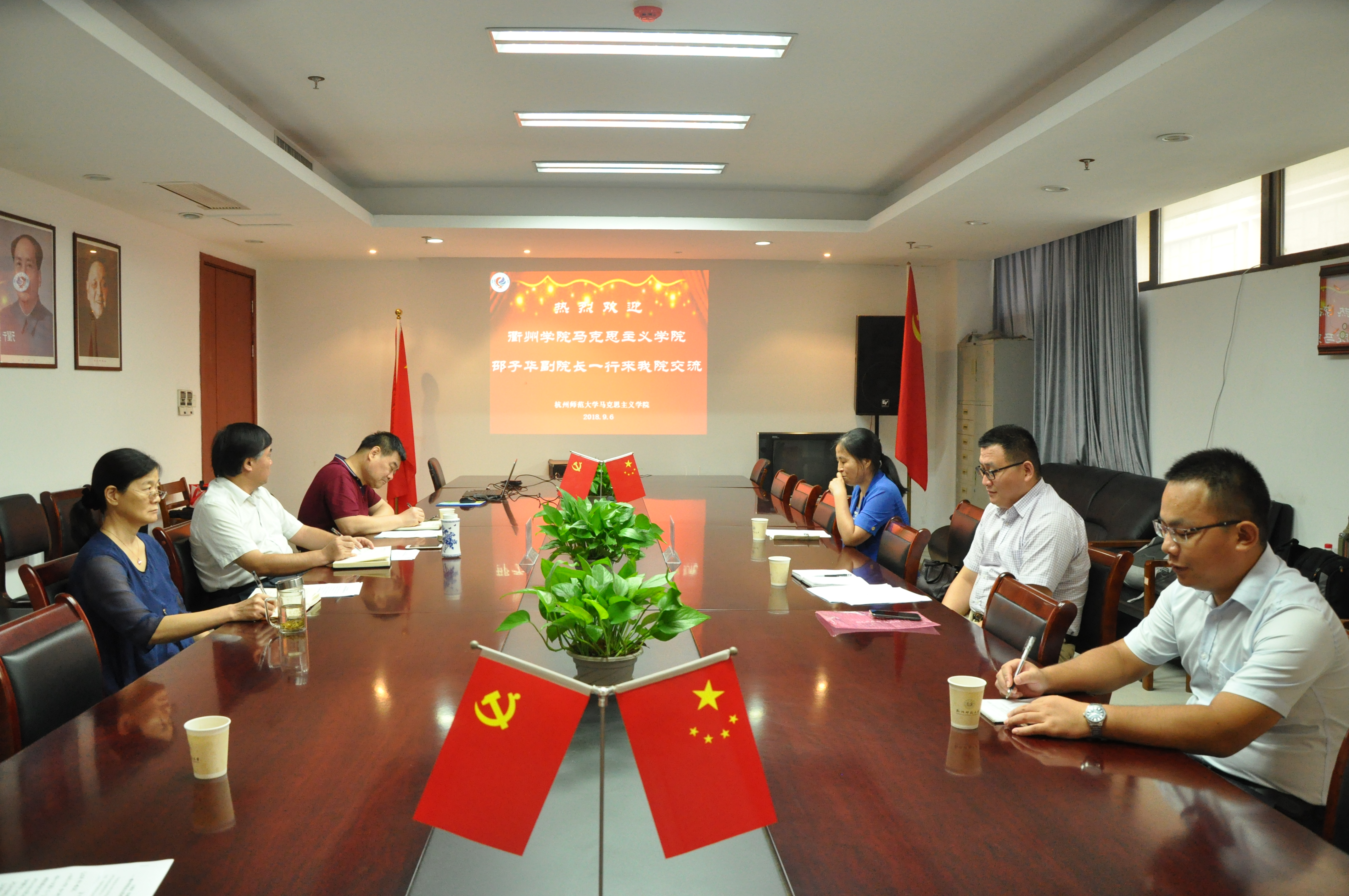 2018年9月6日下午,衢州学院成人电影 副院长邵子华一行3人来成人电影 交流考察。学院党总支书记、院长余龙进,副院长何丽君以及思想道德修养与法律基础教研室教师李瑞平等参加了交流会。