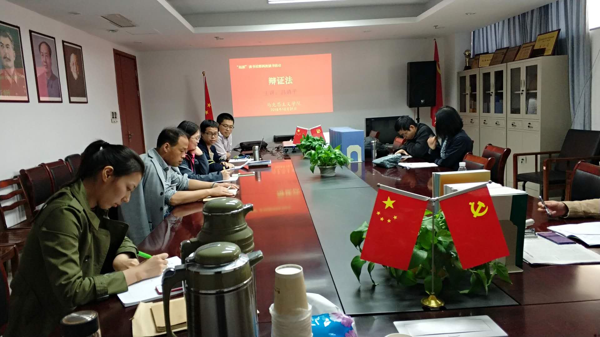本次读书会的主题是关于“辩证法”问题,成人电影 副院长何丽君为本次读书会致辞并高度评价了青年教师的读书活动。她指出,辩证法是马克思主义哲学的强大武器,要活学活用,改革开放40年的实践证明了辩证法的深刻性。何老师劝诫年轻人要多读书,多思考,多交流,年轻人要有压力才会有动力,要能够将所学所思运用到教学中去,引导学生自觉地把马克思主义辩证法当作认识世界的武器,这样才能使思政课的价值得到最大体现。