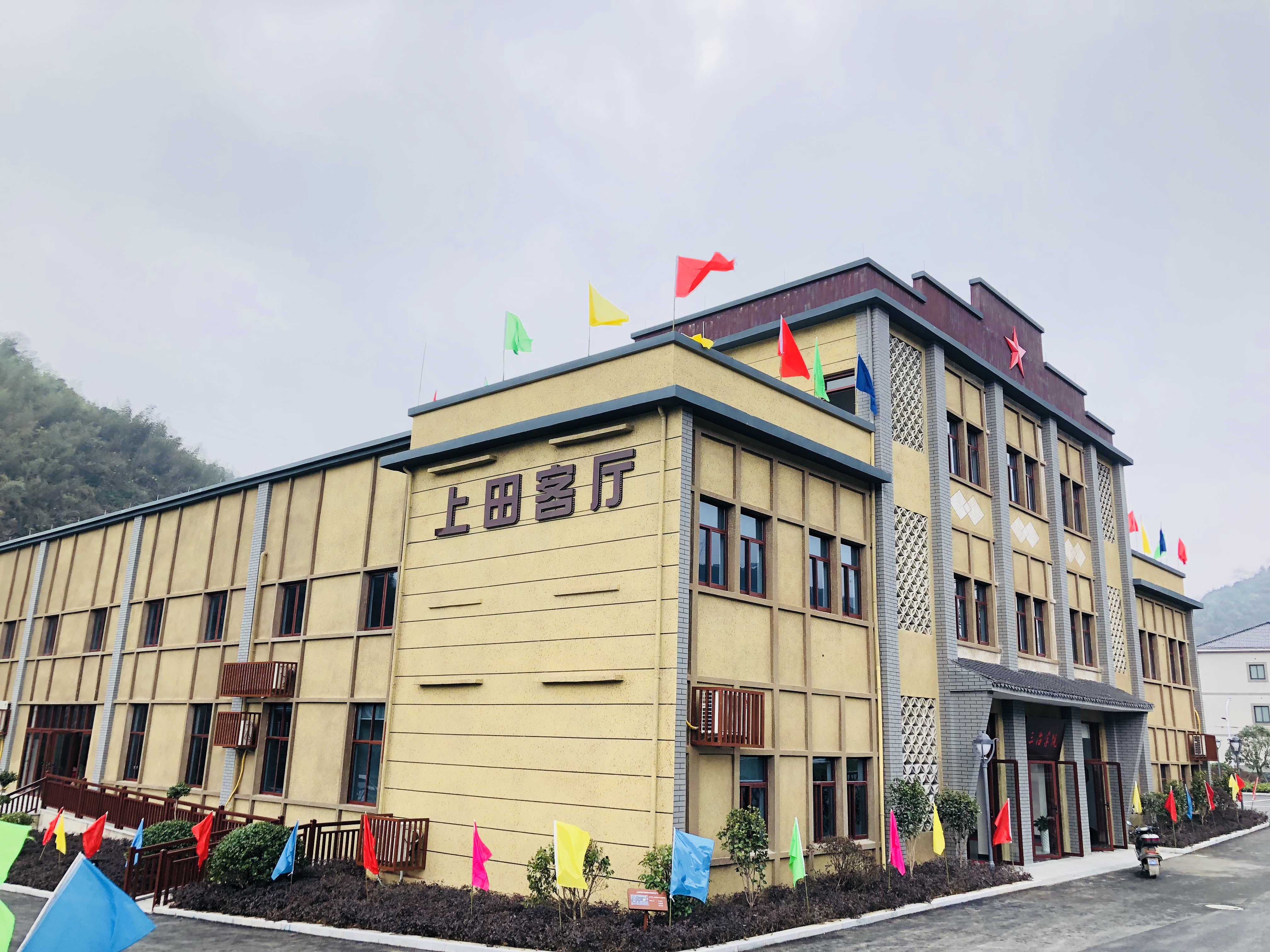 调研组跟随陪同人员踏足了上田村的农耕十亩,见证了当地对生态环境保护的高度重视;分别参观了以文化礼堂、文武馆、乡治馆、文化广场(内含村训走廊、村规、村歌等内容)等为德治载体的文化展区;以“互联网+综合法律服务”的现代微法庭为载体的法治展区;以网格力量、志愿服务6+X等为载体的自治展区。进入二十一世纪,借助浙江省新农村建设的春风,上田村在村党支部的引领和带动下,将基层党组织力量充分发挥在德治、法治、自治的乡村治理进程中,走出了一条“党建树魂、文化归心、法治护航、自治安村、创富惠民”的乡村治理及振兴新路子,不仅改变了自身圆心混乱不安的落后面貌,更为习近平新时代中国特色社会主义思想在浙江的生动实践做了积极探索,也为浙江省“三治融合”建设提供了生动的“上田样板”。