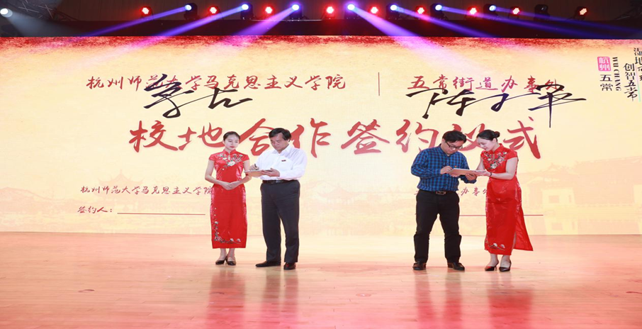 2019年5月9日下午,成人电影 与余杭区五常街道办事处“校地合作签约仪式”在五常街道纪念“五九批示”56周年启动仪式大会上顺利举行。成人电影 院长、党委书记余龙进与五常街道办公室主任陈小平分别代表双方签约,余杭区区委常委、组织部部长朱红丹,区政协副主席陈云水、赵喜凯等出席。