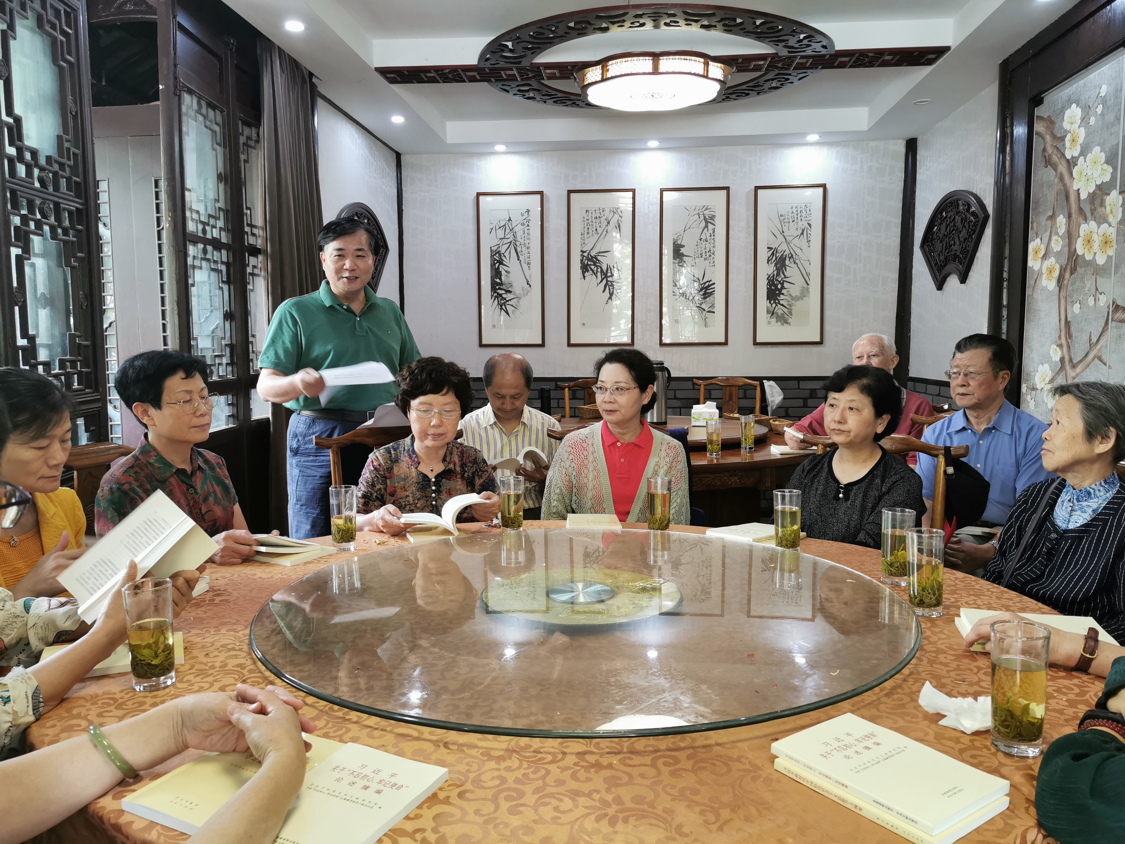 此次庆祝新中国成立70周年、九九“重阳节”活动暨“不忘初心、牢记使命”主题教育专题学习会,马院退休党员相聚一起,就《习近平关于“不忘初心、牢记使命”重要论述选编》、《习近平新时代中国特色社会主义思想学习纲要》的学习,交流了体会,就新中国70年取得的伟大成就畅谈了感想,看到学校和马院的发展变化都感到由衷的高兴,并表示也一定会继续关注学校和学院的发展,以教书育人和入党的初心继续发光发热,把“不忘初心、牢记使命”主题教育搞好,把身体锻炼好!