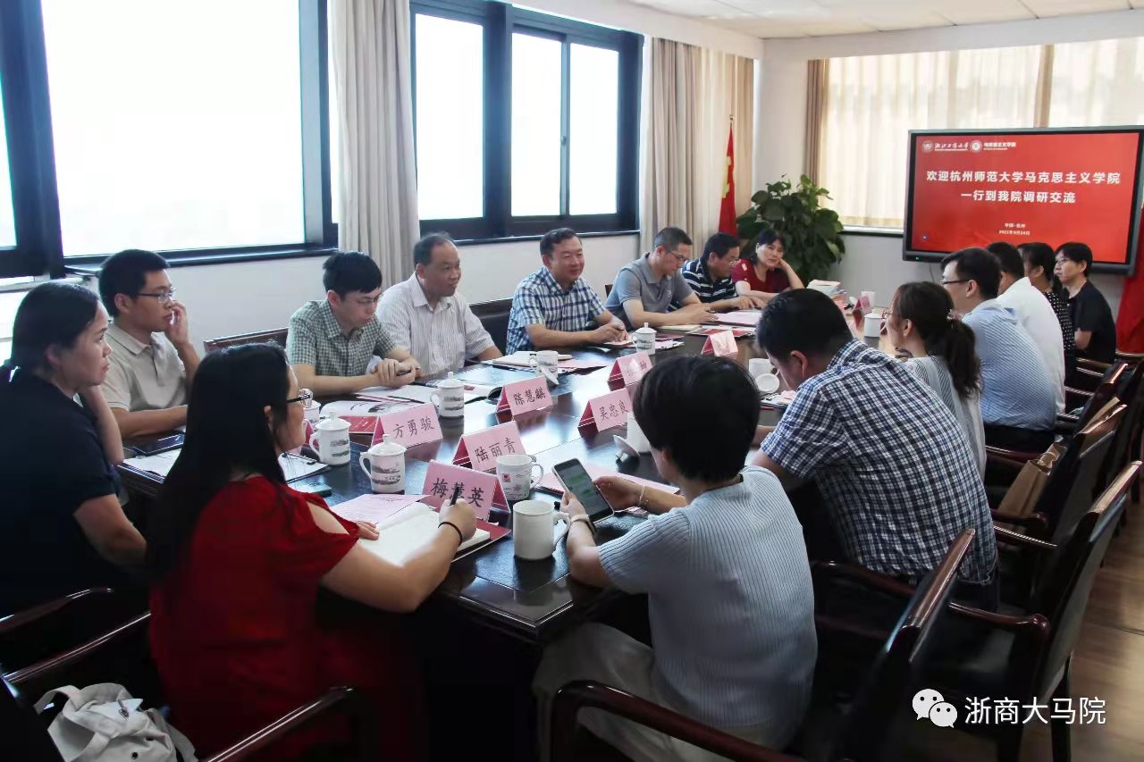 为进一步增强学校之间的沟通交流,学习借鉴其他高校在成人电影 建设和思想政治理论课教学改革等方面的先进经验,9月24日,在院长、党委书记李洪波带领下,成人电影 一行9人赴浙江工商大学调研、交流,学院党委副书记应维华,副院长张坤参加调研活动,教研室主任、综合办、教务办均派人参加。
