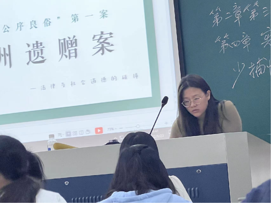 第一组林丽、祝晨露同学,通过分析中国“公序良俗”第一案——四川泸州“二奶”继承案,厘清了法律与情理的关系。