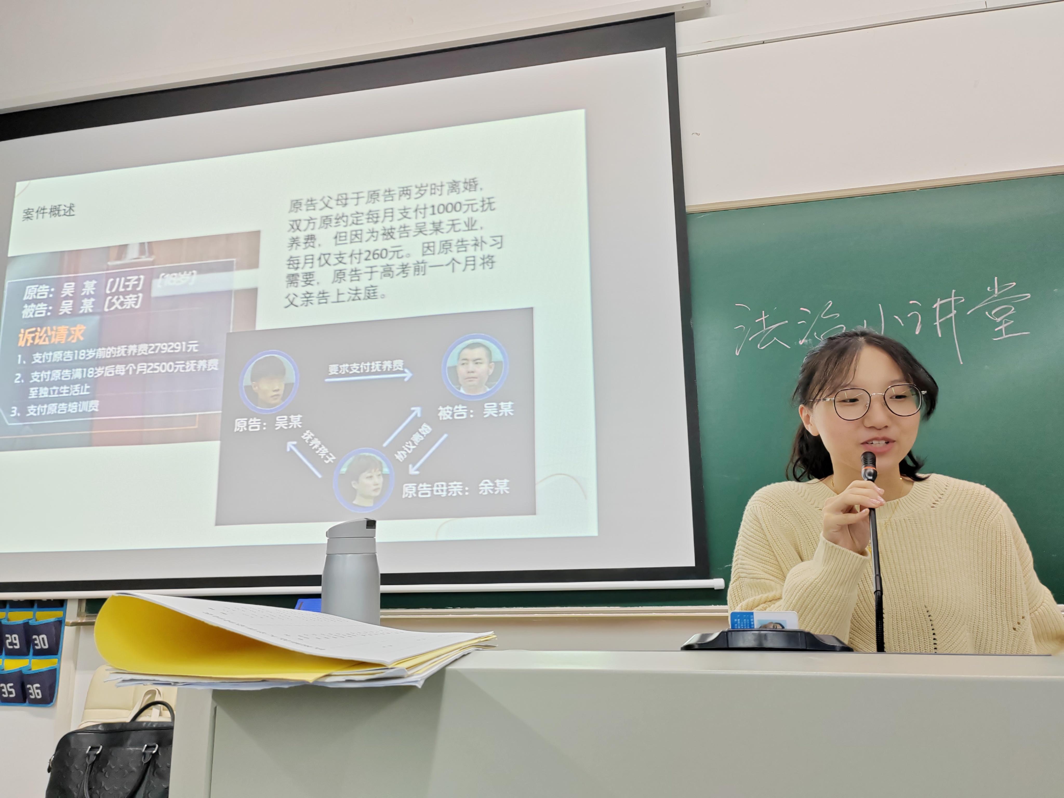 第七组林奕君、吴萱倩同学,通过分享有关吴某父母离异抚养费纠纷案例,让同学们学到了有关抚养费的知识,更让同学们认识到美好家庭对于孩子的重要性。