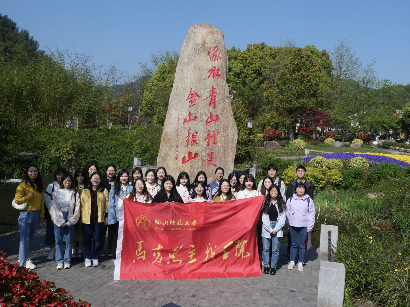 马院学子在“绿水青山就是金山银山”大石碑前的合影