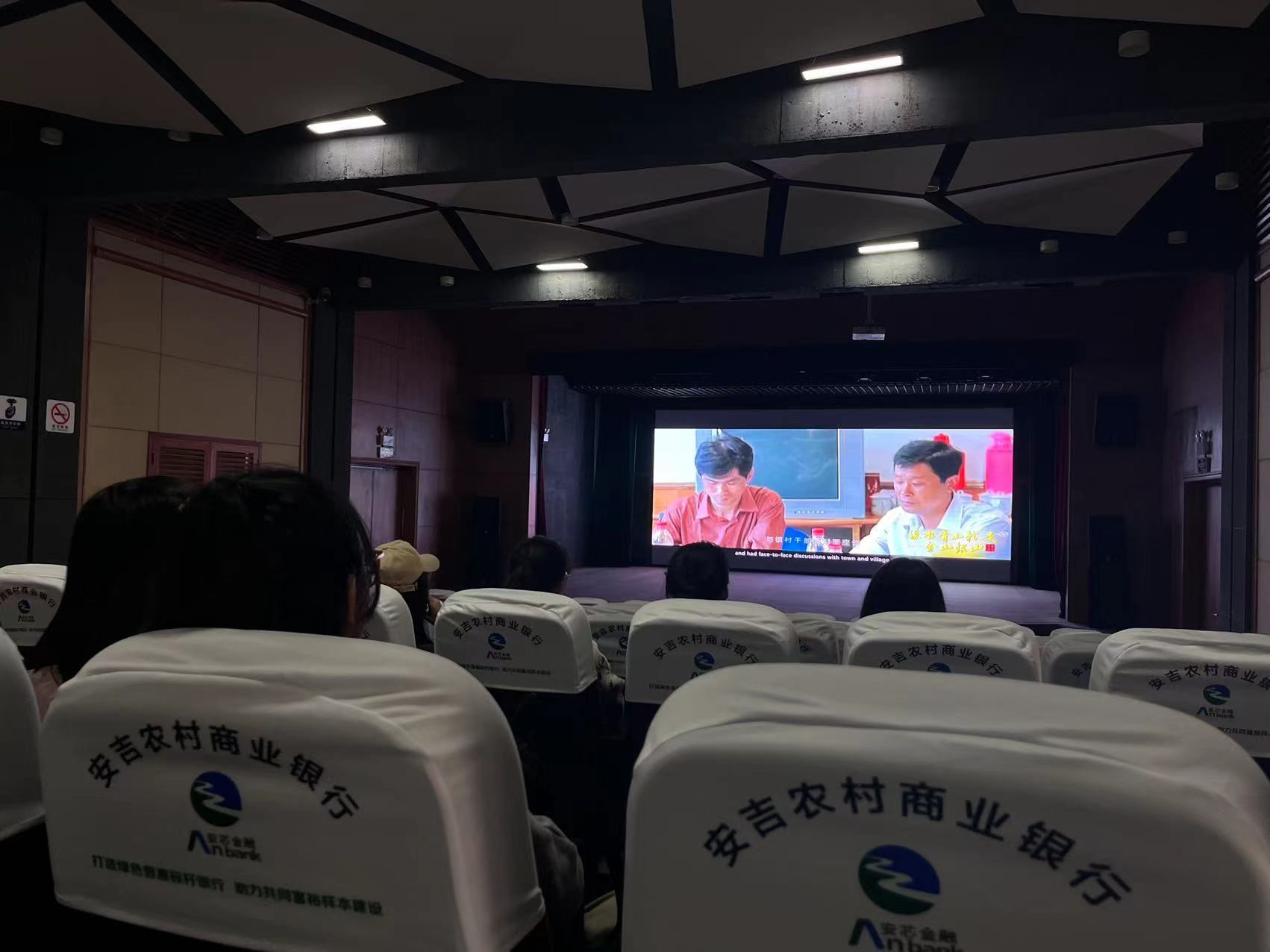 之后,我们来到了余村文化礼堂,观看了“坚定‘两山’路,奋进新时代”专题纪录片。片中提到,时任浙江省委书记的习近平同志到余村考察,并称赞当地关闭矿区,走绿色发展之路的做法是“高明之举”。在那次考察中,习近平首次明确提出“绿水青山就是金山银山”的理念,并且以笔名“哲欣”在《浙江日报》头版“之江新语”栏目中发表《绿水青山也是金山银山》短评。