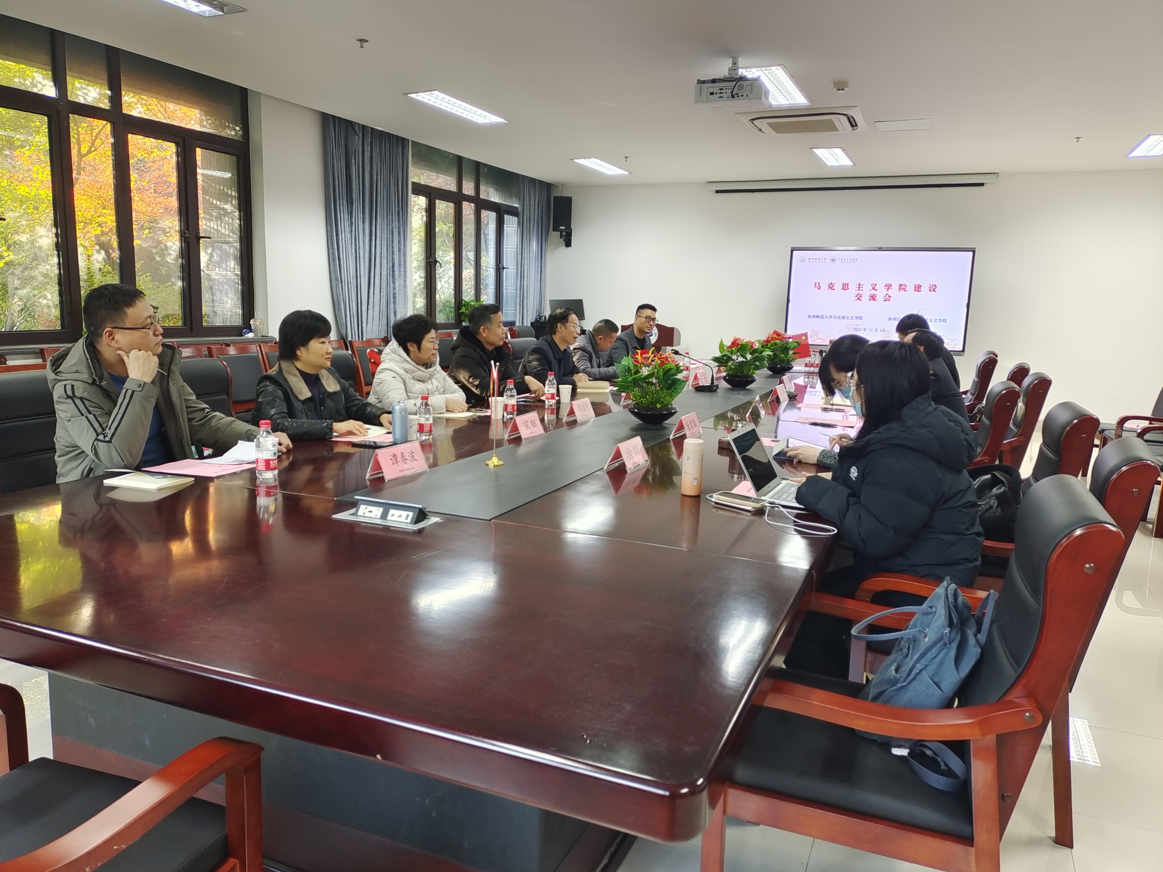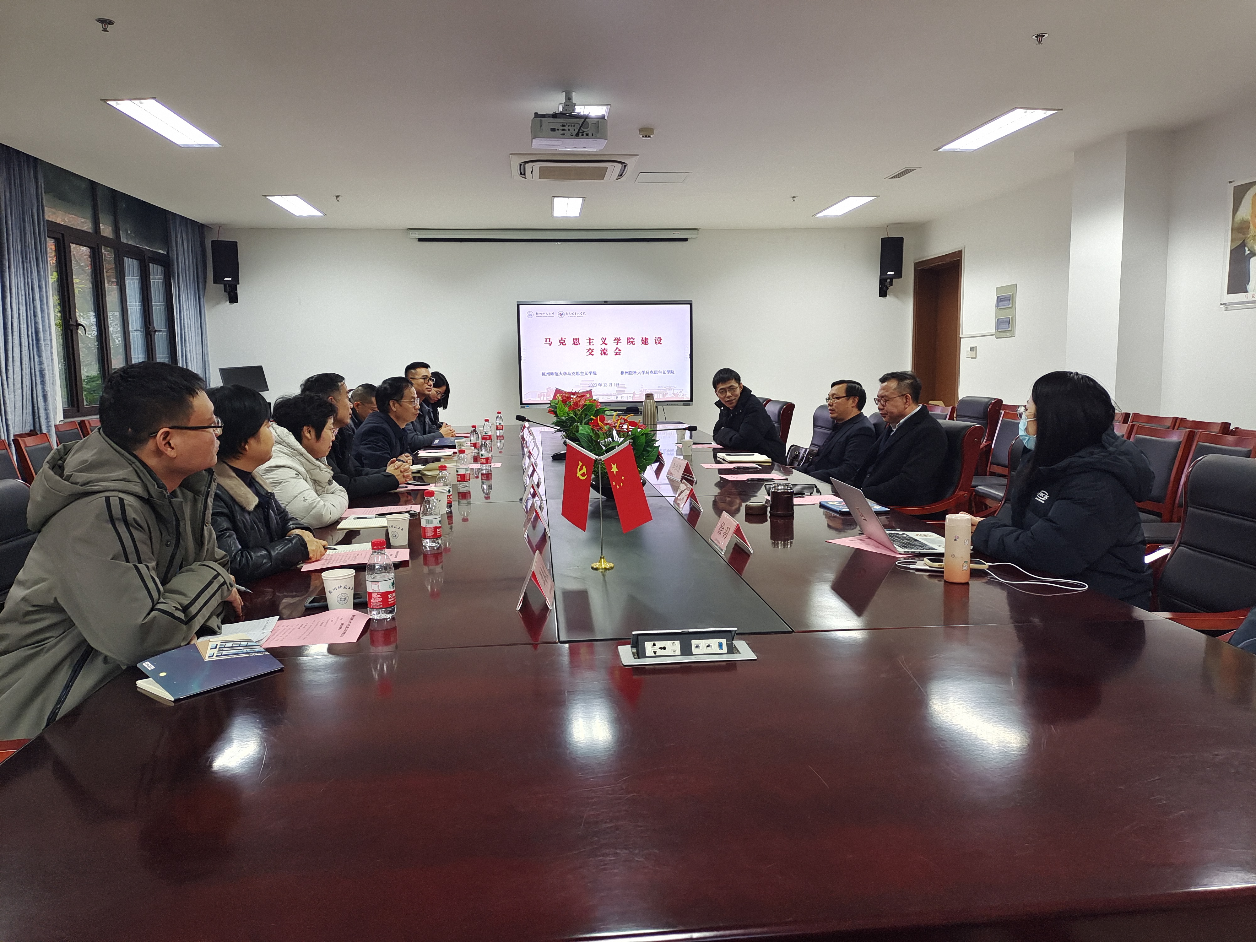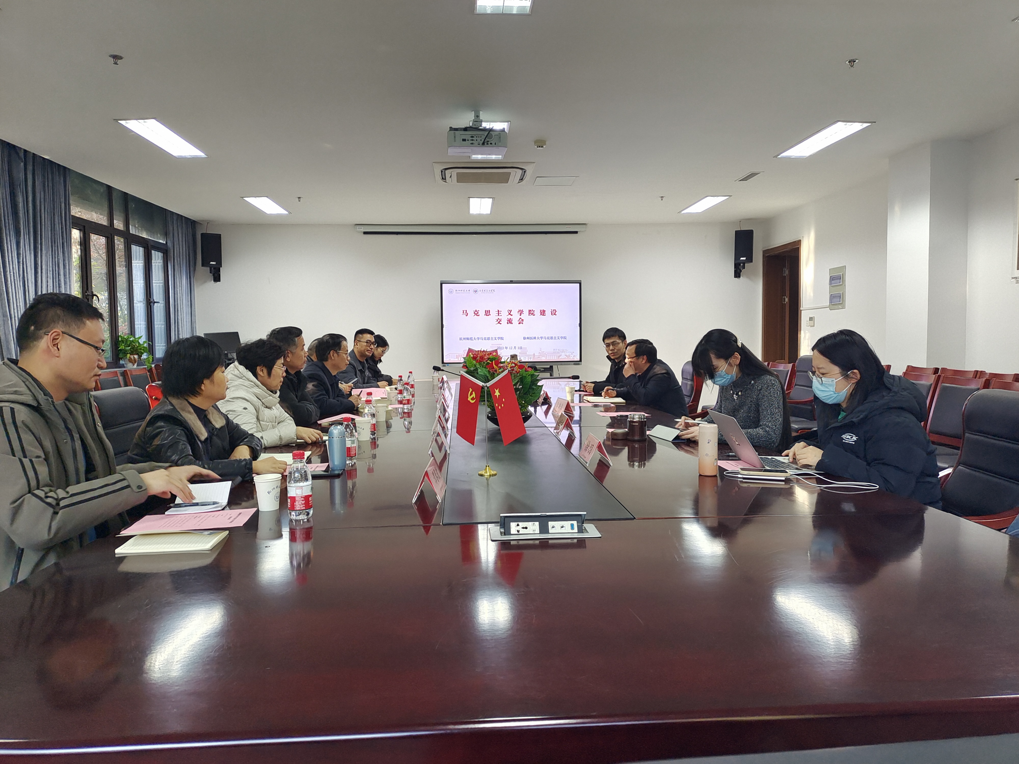 李洪波院长介绍了成人电影 的基本情况与近年来马院在学科建设、教学、科研等方面的发展理念、创新做法和经验成效,并且希望双方能互联互通,相互借鉴。