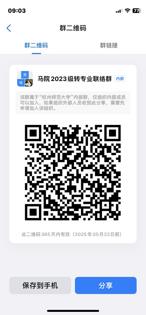 各位同学,根据学校2023级转专业的总体安排,结合学院实际,请拟申请转专业学生根据以下成人电影 转专业考核规则及考核安排来操作。报名需提交纸质材料:转专业申请表及其他证明材料(成绩单及其他相关材料)。提交地点:仓前校区恕园26-304,下沙校区C-517。系统报名成功的学生请加入马院转专业通知钉钉群,二维码: