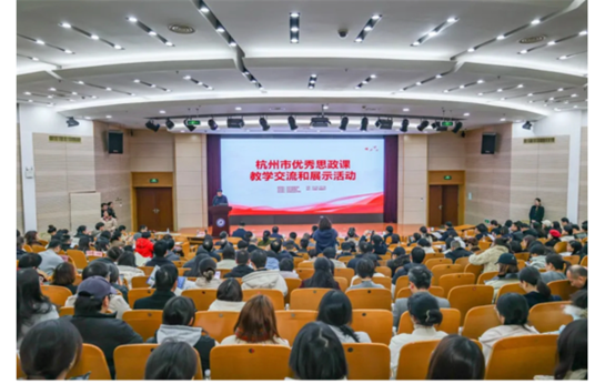 近日,2024年杭州市优秀思政课教学交流和展示活动在杭州职业技术学院举行。杭州市委常委、宣传部部长黄海峰出席并讲话。来自全市各区、县(市)教育局相关负责人及37个大中小学思政教育共同体代表300余人参加活动。