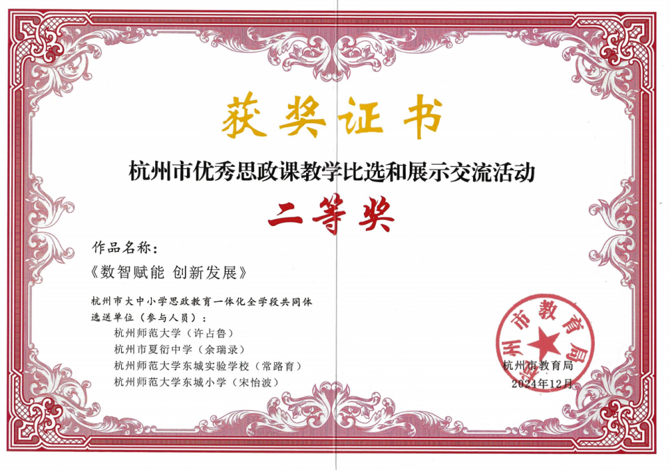 成人电影 教师团队在本次活动中表现突出,荣获特等奖1项、一等奖1项、二等奖3项。这一成绩的取得,是学院领导高度重视、教师团队精心备赛的结果,也充分展现了成人电影 在推进大中小学思政课一体化建设方面的工作实效。