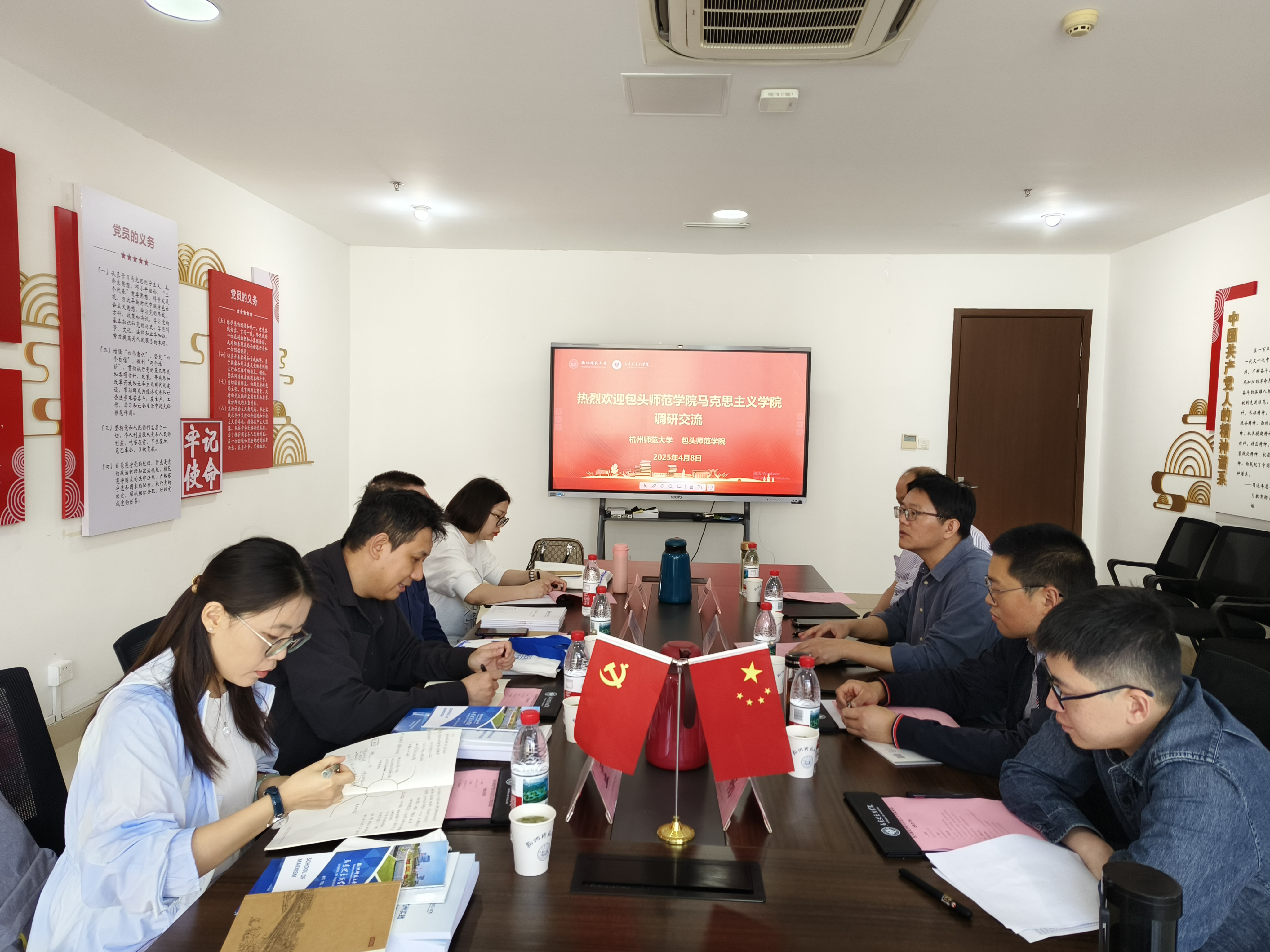 2025年4月8日上午,包头师范学院成人电影 中国近现代史纲要教研室主任张宇杰一行来成人电影 调研交流。成人电影 学术副院长、副教授姜海波等一同在恕园26-303会议室热情接待了来访客人。