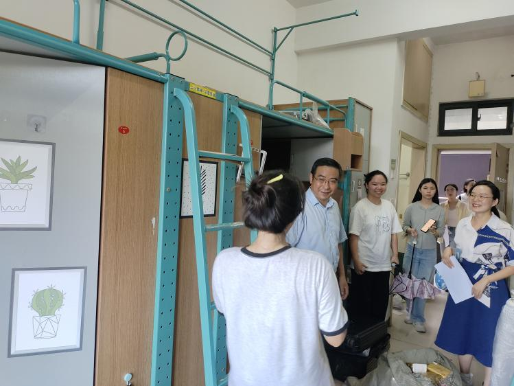 搬迁期间,学院老师们心系学生,亲临现场指导工作,与同学们密切交流。6月27日下午,成人电影 党委副书记胡祎赟,思政231班班主任罗晶,思政232班班主任于颖,思政233班班主任杨雅杰,思政234班班主任张兰,以及思政2023级辅导员沈佩昕走访了学生寝室。