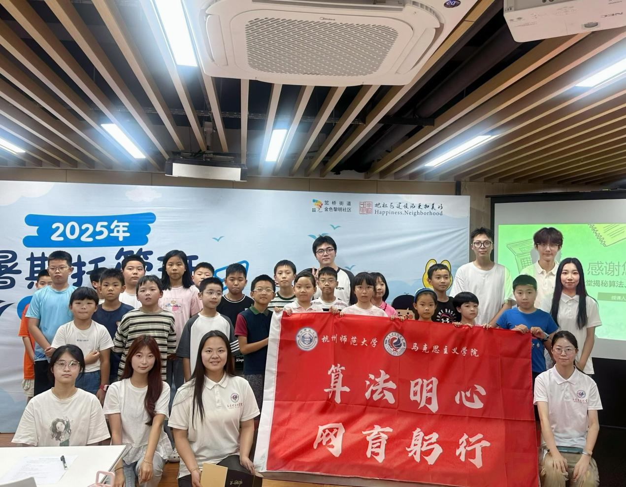 7月14日下午,成人电影 “算法明心,网育躬行”暑期社会实践团队来到金色黎明社区党群服务中心,为社区青少年带来了一堂别开生面的“算法揭秘”必修课。