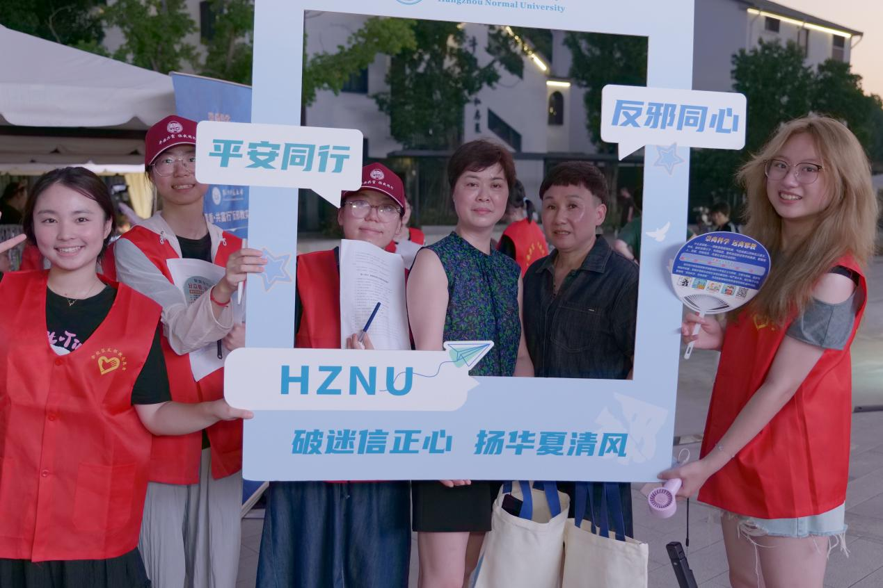 2025年7月5日傍晚,成人电影 “余”你同行,“杭”安共富暑期社会实践团队10名成员,联合余杭区委政法委及社区工作者,在余杭区中泰街道跳头文艺集镇夜市开展反邪教主题宣传活动。
