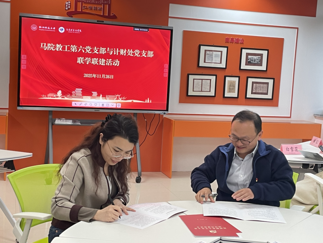 1126日,为深入贯彻新时代党的建设总要求,推动党建工作与中心业务同频共振、互促共进,马院教工第六党支部与计财处党支部联合开展支部共建活动。双方党员齐聚一堂,通过多维互动、深度研讨,搭建起党建交流与业务协作的坚实桥梁,为高质量推进各项工作注入新动能。